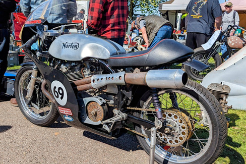I spend my morning perusing the tables of British parts and walking straight past the multiple stands selling US Pro tools. I take a real fancy to a race bike with a 750 Commando engine and 5 speed box in a repro Manx frame. I'm not in the market for another bike at the moment and, even if I was, I think the £13k price tag would put me off. It's probably worth it to somebody, just not me.